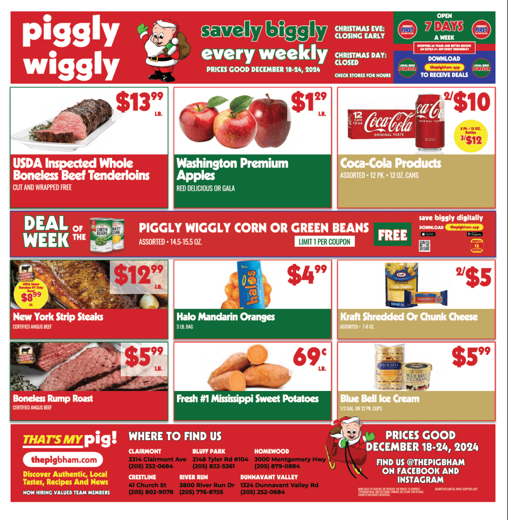 Get festive savings this holiday season at Piggly Wiggly locations in Bluff Park, Clairmont, Crestline, Dunnavant Valley, Homewood, and River Run. Make your holiday meals extra special without breaking the bank!