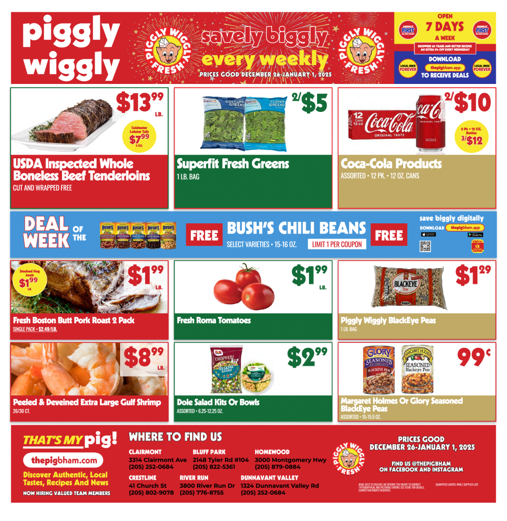 Start your New Year’s celebrations with incredible savings at Piggly Wiggly Birmingham. This week’s circular is packed with everything you need for your holiday festivities and everyday essentials. From premium meats to fresh produce, we’re offering spectacular deals to help you ring in 2025 without breaking the bank.