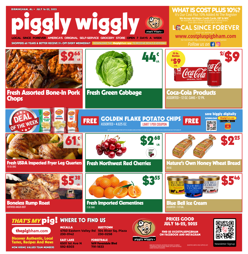 Make the most of your shopping trip from July 16–22, 2025, at Piggly Wiggly Cost Plus in East Lake, Forestdale, Hueytown, or McCalla. Clip, shop, and save every aisle, every day!