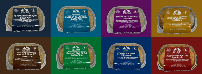 Dirt Road Gourmet offers everything you love about homemade casseroles—without the time or mess. With each bite, you’re enjoying the taste of Southern tradition and supporting a local Alabama business.